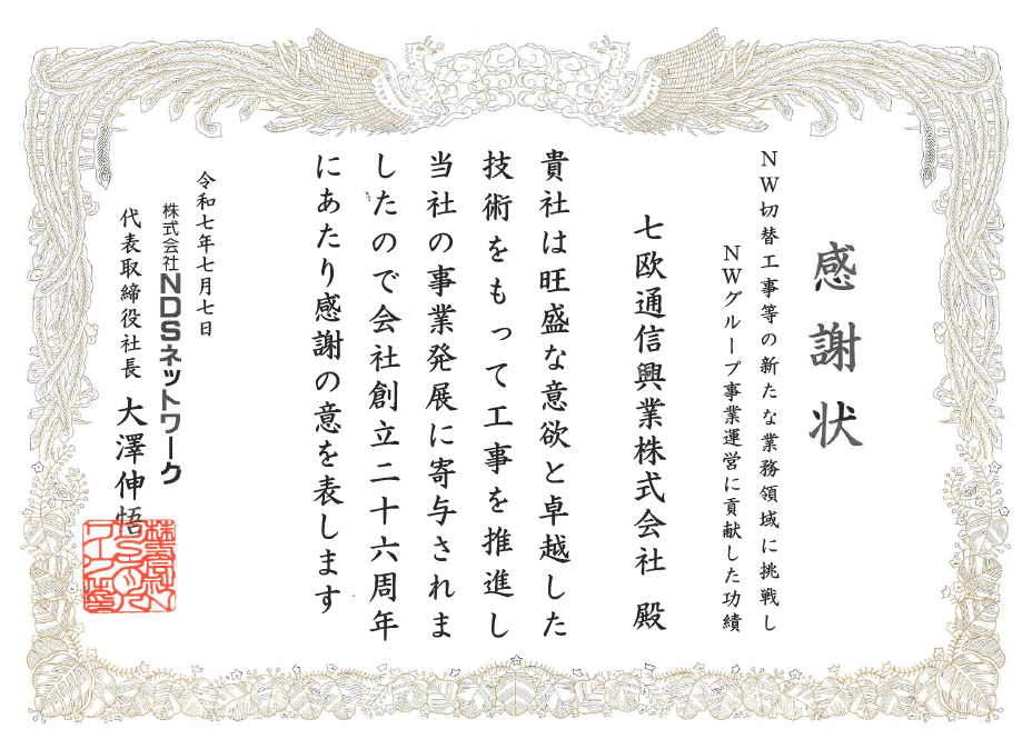 私たち七欧(ななおう)通信興業株式会社は、国内大手通信建設会社であるコムシスグループ様の一次請負会社として、主にNTTビルにおける通信インフラの施工を長年にわたり実施してまいりました。